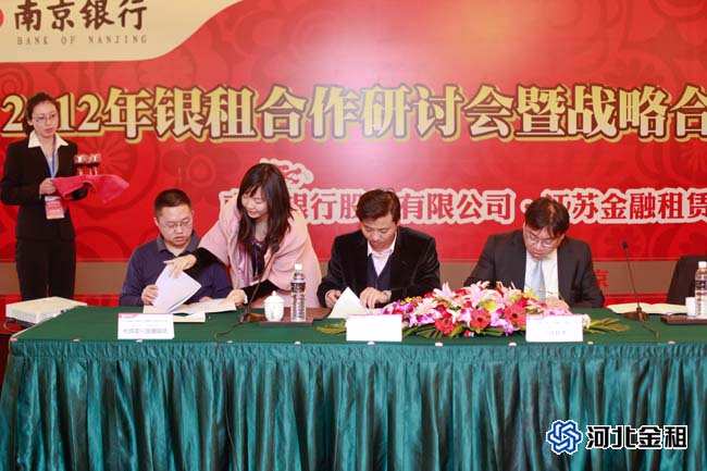 2012年2月21日,我公司代理總裁徐敏俊攜總裁助理朱彬、李寧生參加了南京銀行主辦的“2012年全國銀租合作研討會”。會上,公司總裁助理兼金融部總經理朱彬就公司的已有經營業績、戰略發展布局、客戶資源定位、與南京銀行合作經驗、未來融資需求等內容作了題為《提高效率、化解風險》的發言。