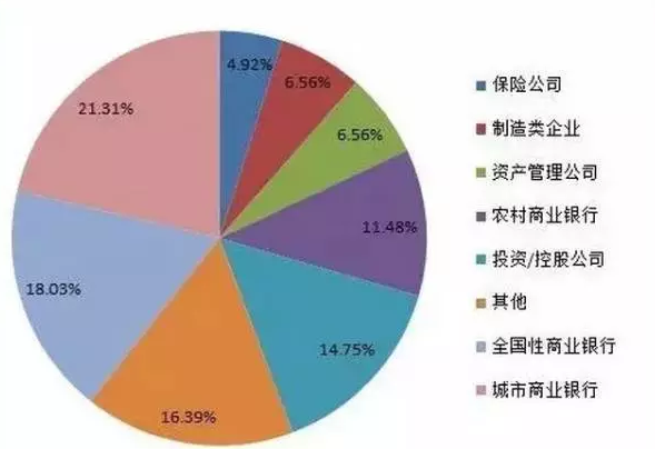 在所有金融租賃公司的控股股東和主要(前兩大)股東中,城市商業銀行占21.31%、全國性商業銀行占18.03%、農村商業銀行占11.48%、投資/控股公司占14.75%。需要說明的是,該比例是按照股東的數量計算,并非按照投資金額的權重計算,參考意義不大。