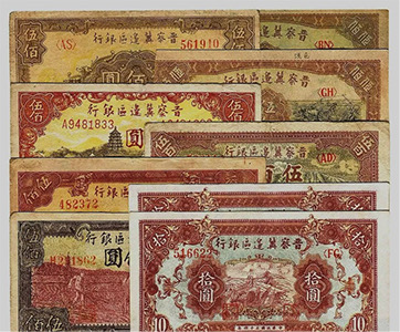 晉察冀抗日根據地,是中國共產黨在抗日戰爭時期于敵后開創的第一個抗日根據地。晉察冀邊區政府于1938年2月成立晉察冀邊區銀行,在山西五臺縣石咀鄉的普濟寺內開始營業。邊區銀行的貨幣發行后,清除了地方發行的各種鈔票,統一了邊區的貨幣市場,支持了抗日戰爭,支持了生產,改善了人民生活,深受抗日根據地軍民的歡迎。晉察冀邊區票當時在山西、河北、察哈爾省、熱河省以及遼寧西部、內蒙古、山東德州地區等敵后抗日根據地流通,流通人口達3000多萬人。直到1948年晉察冀邊區銀行與冀南銀行合并,成立華北銀行,晉察冀邊區票才停止流通使用。