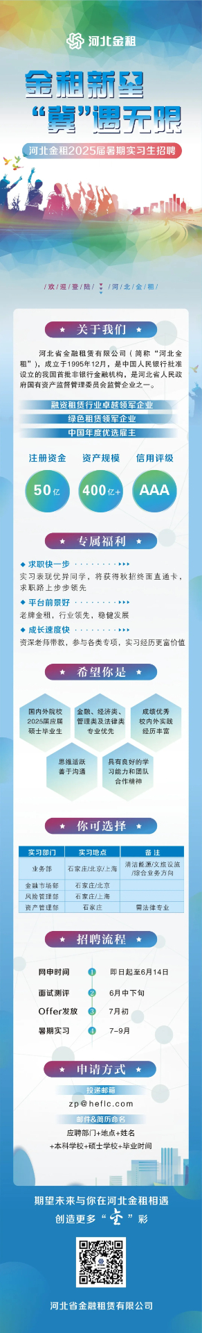 河北金租2025屆暑期實習生招聘 | 金租新星 “冀”遇無限